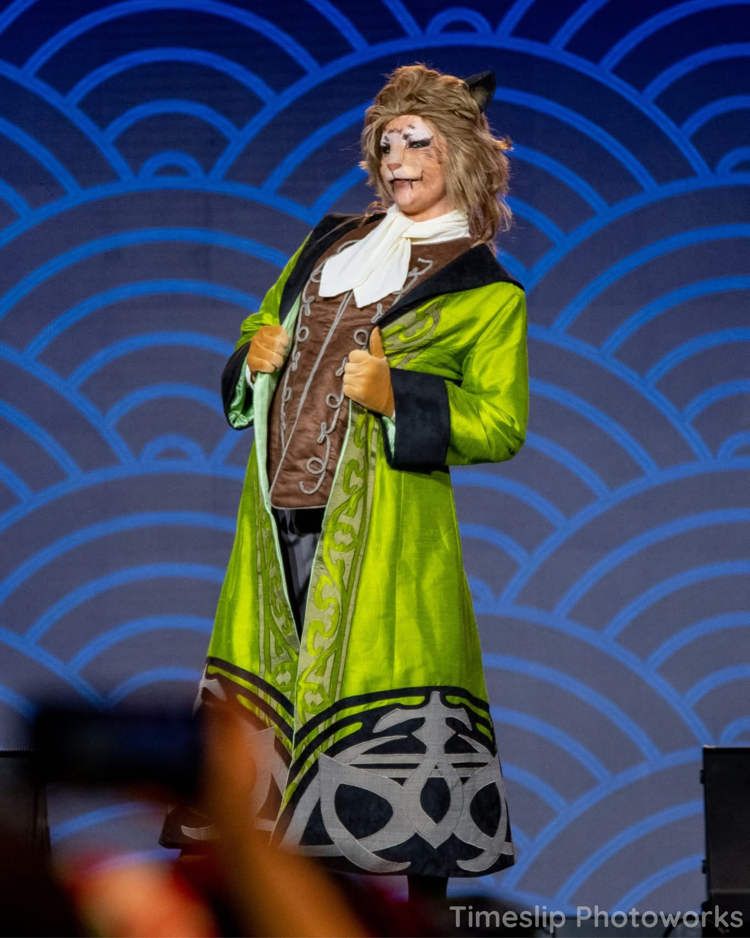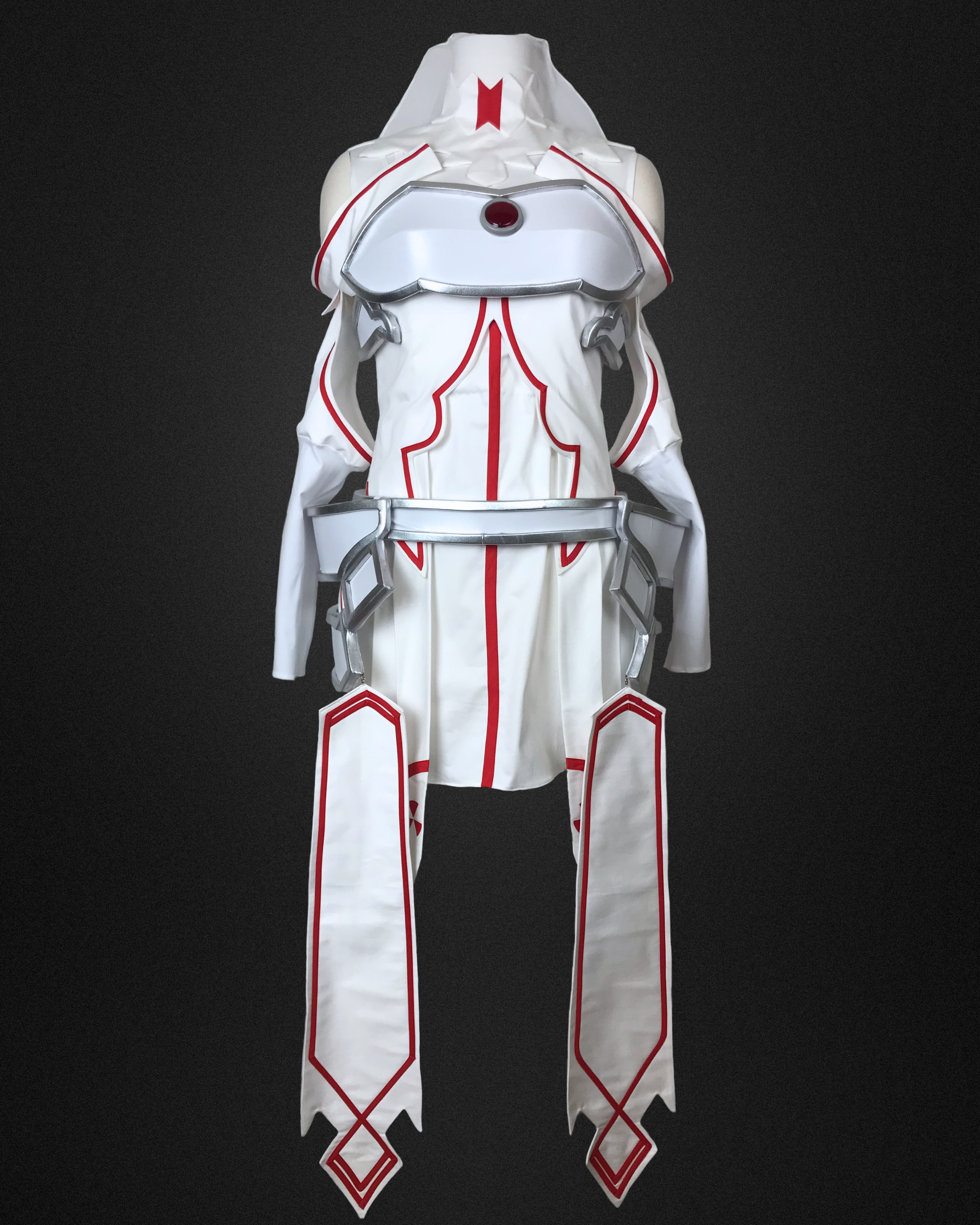 Examples: A fantasy costume with a dress, cape with embroidery detail, breastplate, arm bracers, pauldrons, and leg armor. A magical girl costume with a hand-beaded bodice, an ombre-dyed skirt, necklace, tiara, wrist cuffs, shoes, and a staff prop.